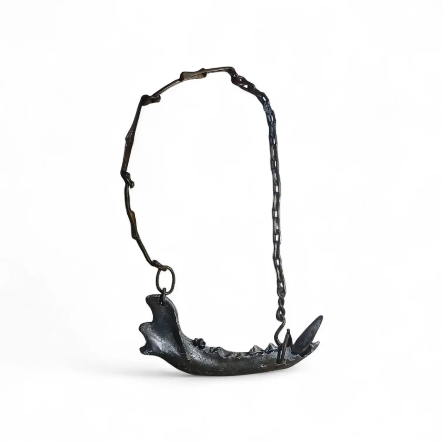 Cobre, Bronze e mandíbula de cachorro. Peça única.